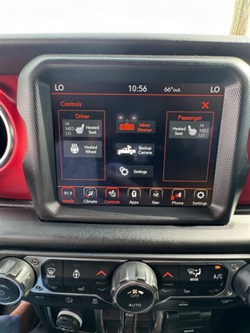 Factory default features include advanced 4WD capabilities, an 8.4-inch touchscreen infotainment system with Apple CarPlay and Android Auto integration, a premium audio system, and durable all-weather floor mats. Safety is prioritized with features such as adaptive cruise control, blind-spot monitoring, and a rearview camera. With a fuel efficiency rating of 16 MPG in the city and 23 MPG on the highway, this Gladiator Rubicon is in excellent overall condition, making it an ideal choice for those seeking both functionality and flair.